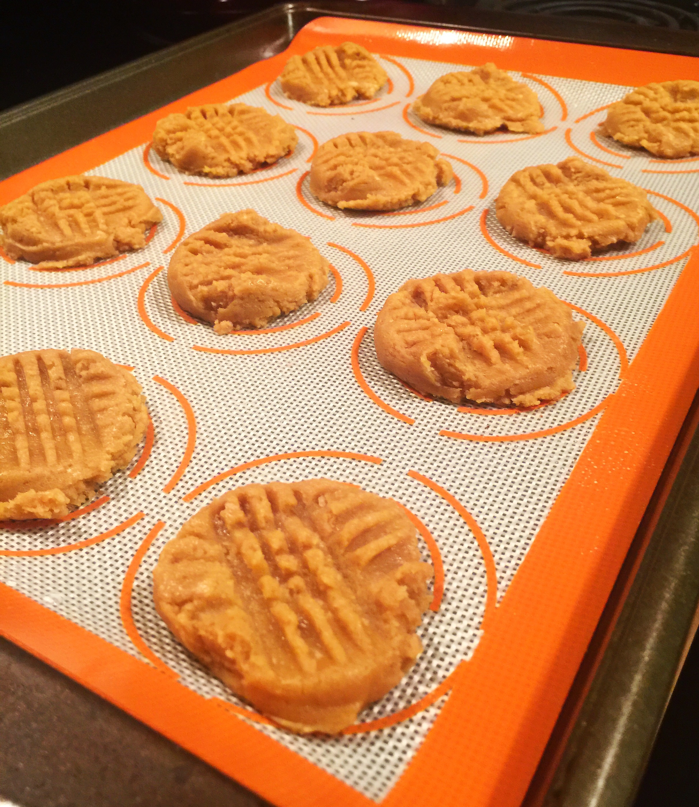 Slightly flatten each ball of dough with a fork. Bake 8-9 minutes. Allow to cool.
