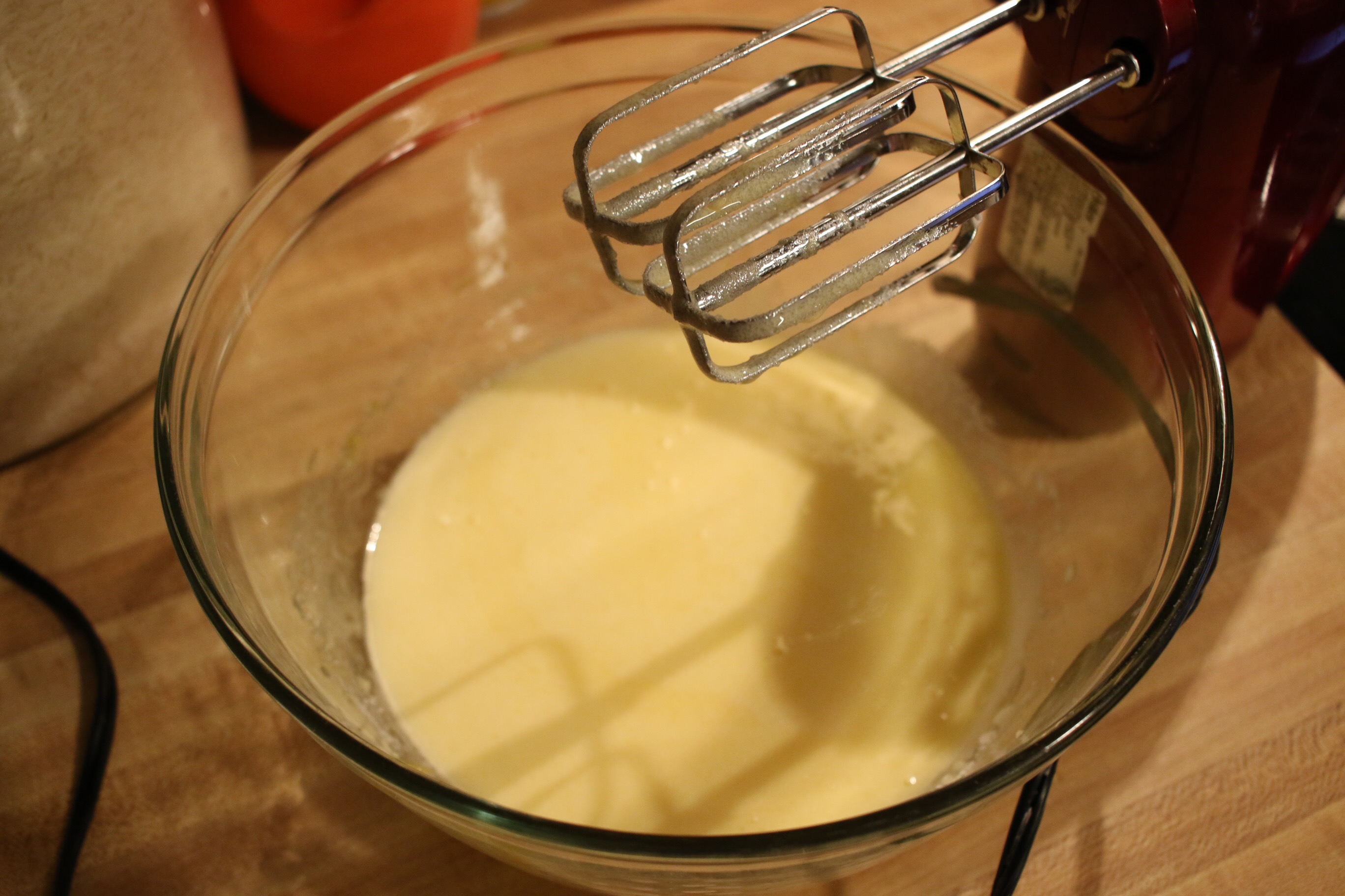 Preheat oven to 350 degrees. With a mixer, beat the eggs with the sugar until slightly thickened and light in color, about 5-7 minutes. The mixture should almost double in size. The eggs work as your leavening agent in this recipe, so do not skip this step.