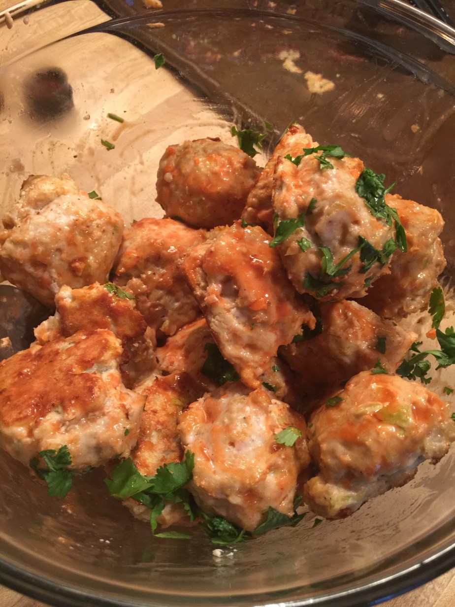 Place the meatballs in a bowl, add the buffalo sauce and gently toss to combine.