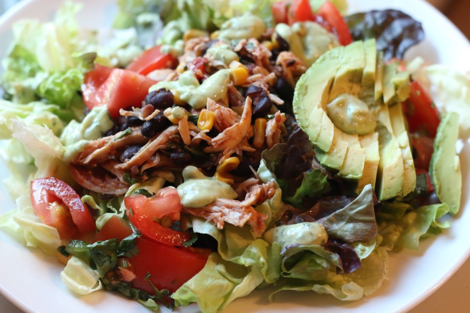 My favorite kind of slow cooker recipe is the kind that takes very little prep. This recipe is easy to pull together before heading out the door. Once it’s done you pile everything into bowls and it’s done. You can put this chicken on top of rice or eat it as a side with veggies. I prefer it in top of salad.