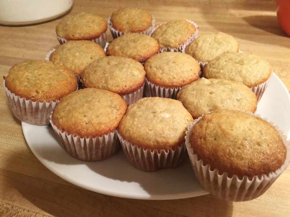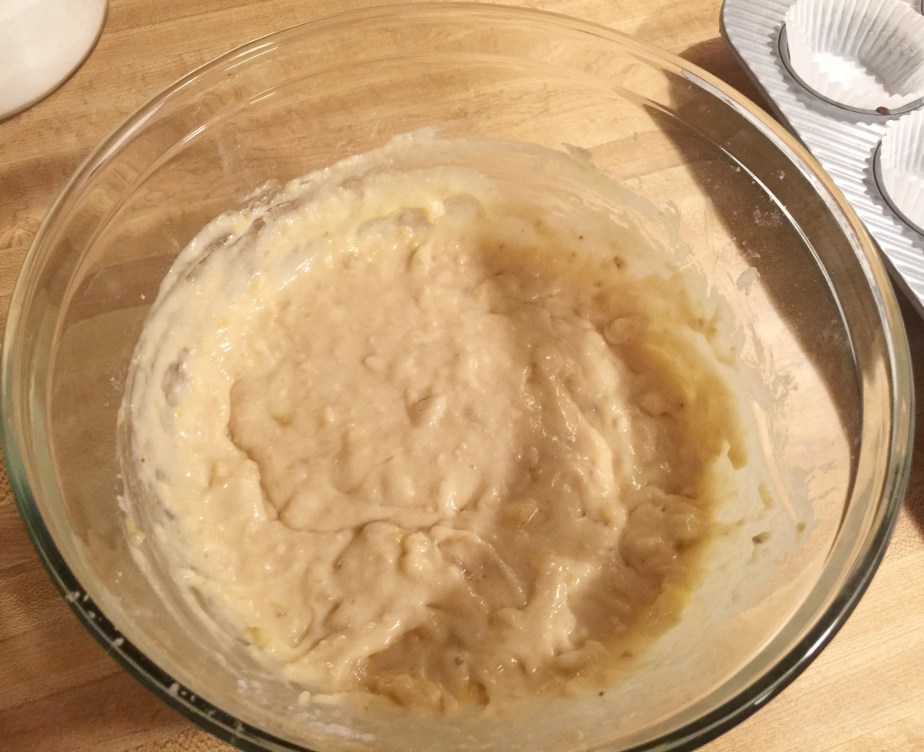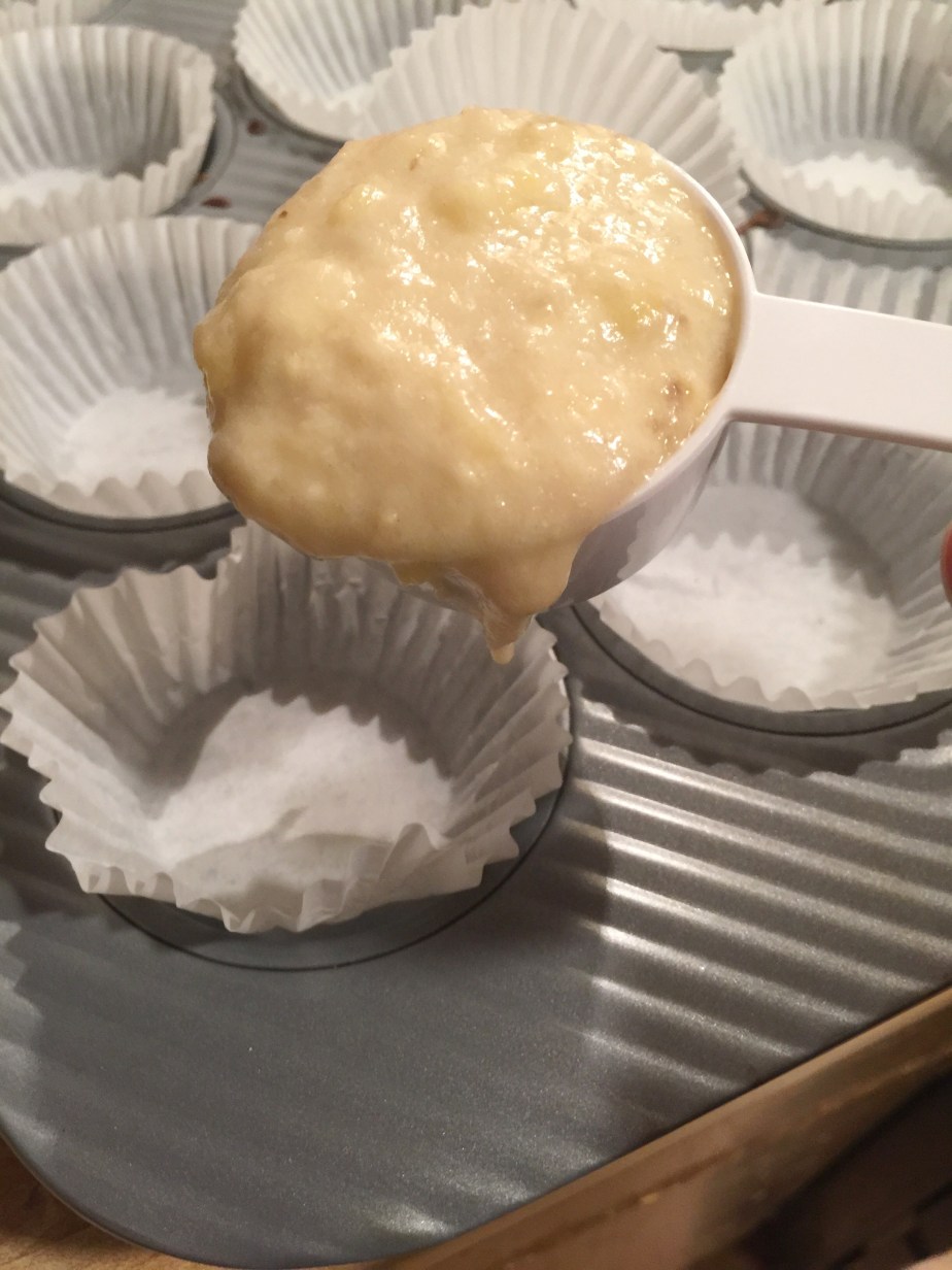 The banana started to brown, usually by then my kids do not like to eat it so instead of getting rid of it we either make banana bread, banana muffins or I freeze put it in the ziplock bag for a smoothie later. My son Deven asked for banana muffins for breakfast.