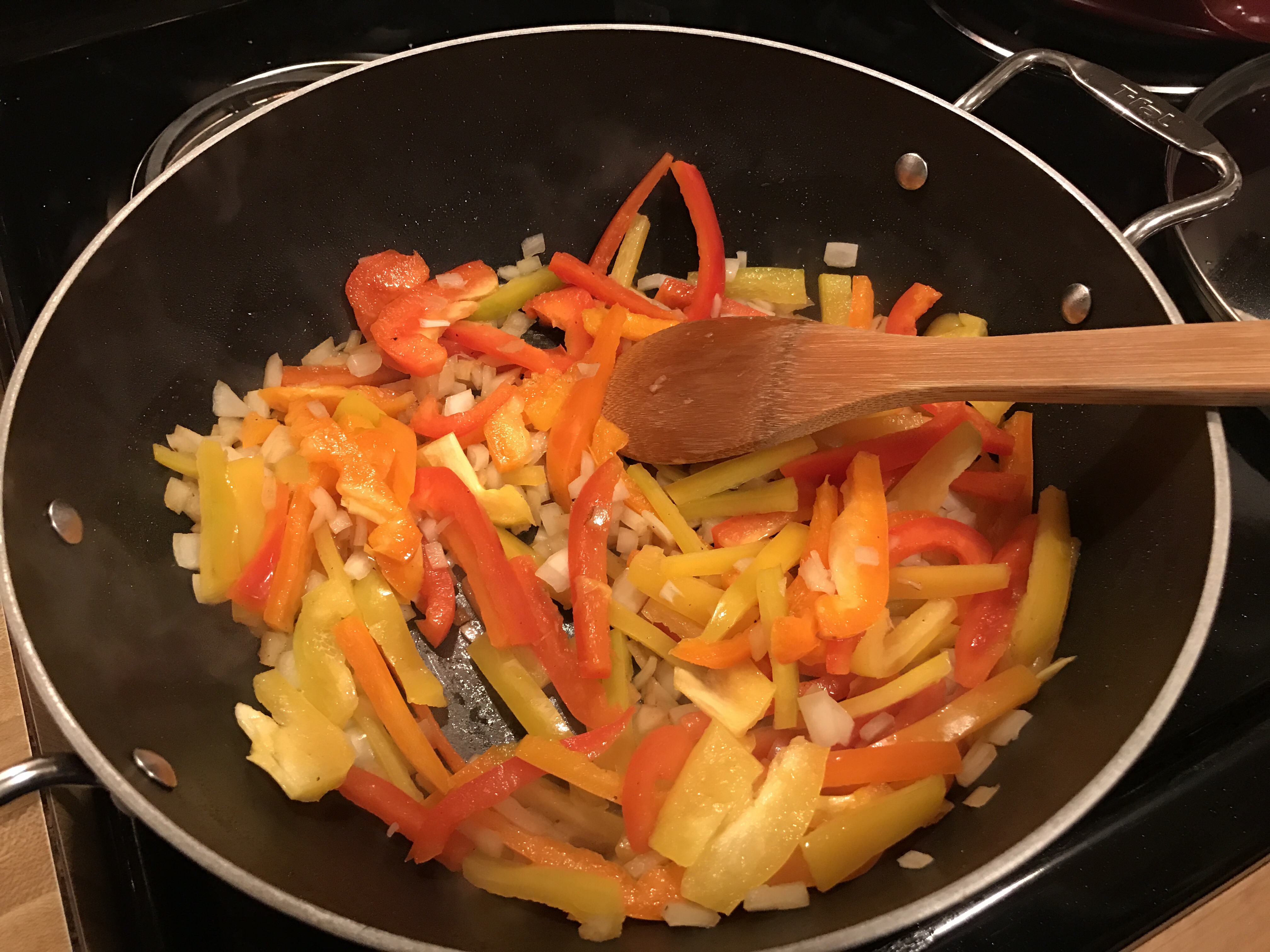 3 inch Peppers (red, orange and yellow), cut into strips