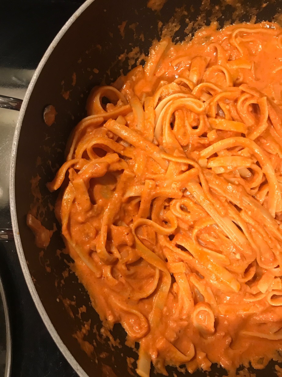 Stir in pasta. Add pasta water if needed.